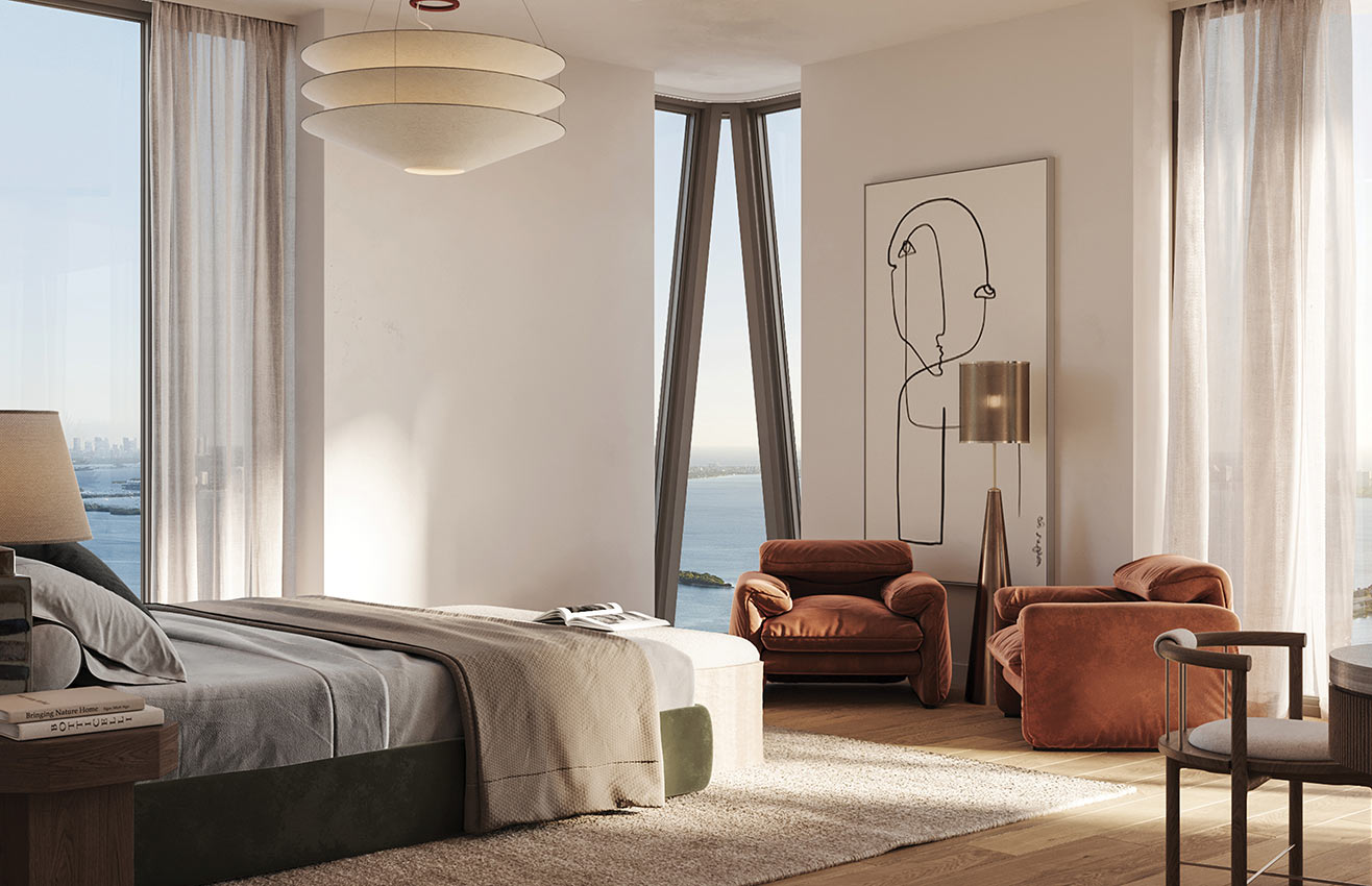 - Full-floor Villa Piano residences range from four to five bedrooms